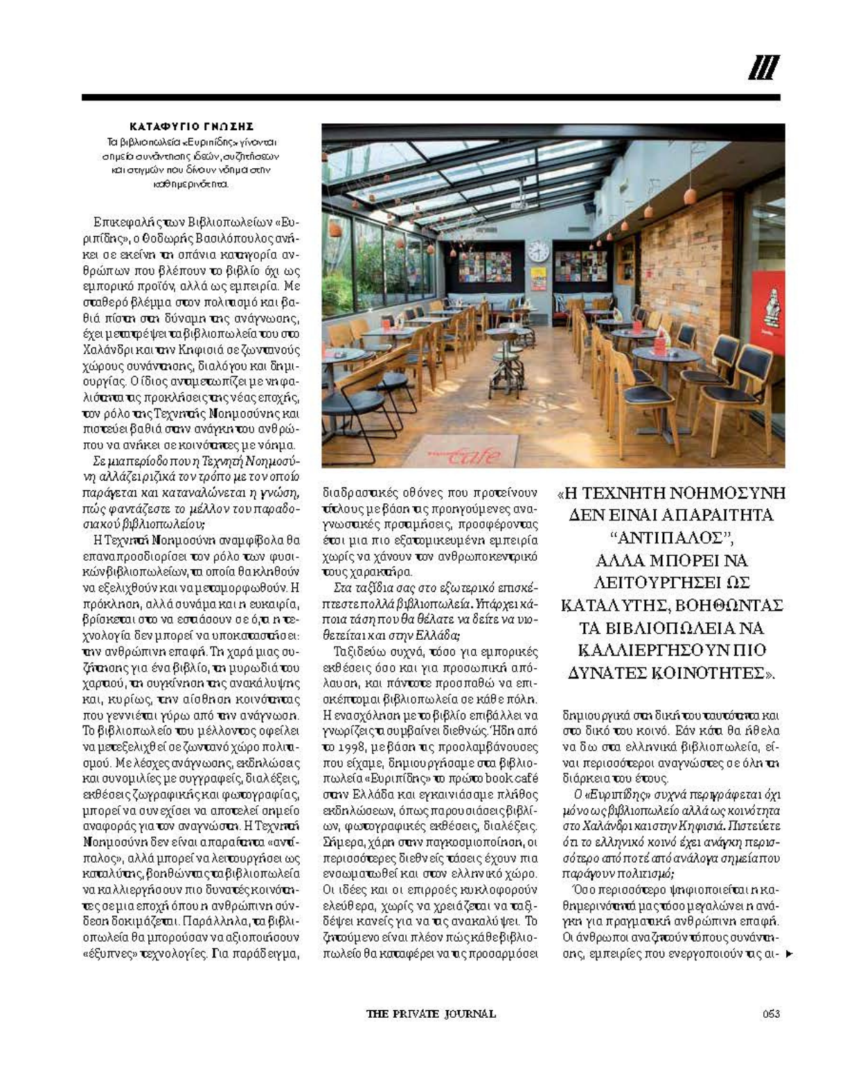 Τα Βιβλιοπωλεία Εὐριπίδης στο Private Journal της Πειραιώς