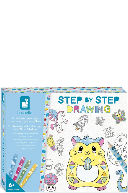Αυτό το σετ δημιουργικού σχεδίου για παιδιά 6 ετών και άνω περιλαμβάνει 20 σχέδια ζωγραφικής βήμα-βήμα, 4 μαρκαδόρους γκλίτερ (μπλε, ροζ, πράσινο, κίτρινο), 25 φύλλα και μολύβι με γόμα.