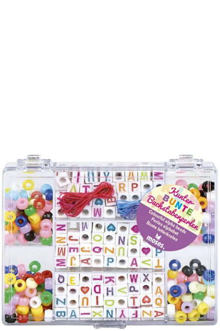 Περιεχόμενο ανά κουτί: 190 κύβοι με γράμματα, πολλές στρογγυλές χάντρες και 2 μέτρα ελαστικό κορδόνι για χειροτεχνίες και πλέξιμο.