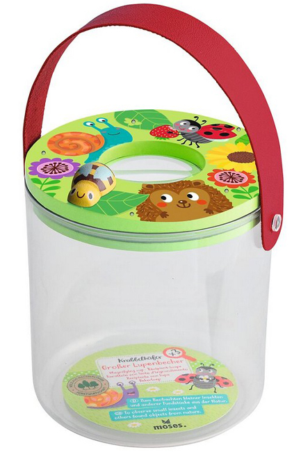 Δοχείο με μεγεθυντικό φακό που επιτρέπει συναρπαστικές παρατηρήσεις εντόμων και λουλουδιών. Εξοπλισμένο με ξύλινο καπάκι και ενσωματωμένες οπές αερισμού, επιτρέπει στους μικρούς εξερευνητές να παρατηρούν τη φύση από κοντά.