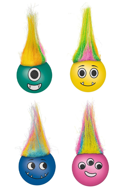 Αυτά τα διασκεδαστικά τρελομπαλάκια Monster Bouncy Balls με τα χαριτωμένα πρόσωπά τους και τα πολύχρωμα, αφράτα μαλλιά τους, αναπηδούν ψηλά και προσφέρουν δράση στο παιχνίδι!