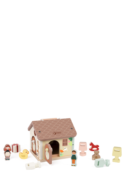 Τοκ, τοκ! Ποιος είναι εκεί;Αυτό το μοναδικό παιχνίδι με κλειδαριές και κλειδιά έχει σχήμα σπιτιού και είναι διακοσμημένο με χαριτωμένους χαρακτήρες, γατάκια και τουρτίτσες γενεθλίων σε στυλ κινουμένων σχεδίων. Τα παιδιά μπορούν να ανοίγουν και να κλείνουν τις πορτούλες, ανακαλύπτοντας τι κρύβεται πίσω από κάθε μία.