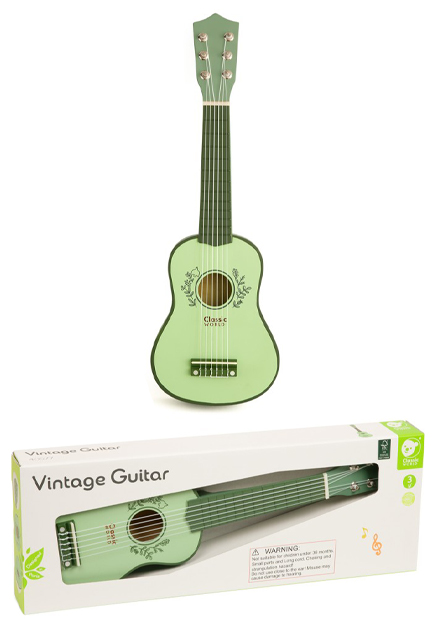 Αυτή η ξύλινη κιθάρα έχει ένα κομψό vintage χρωματισμό προσφέροντας ένα κλασικό ρετρό στυλ για να απολαμβάνουν τα παιδιά και να ταξιδεύουν με τις νότες της. Βοηθάει τα παιδιά να αναπτύξουν τη μουσική τους αίσθηση, ενώ παράλληλα καλλιεργούνται οι δημιουργικές τους δεξιότητες.