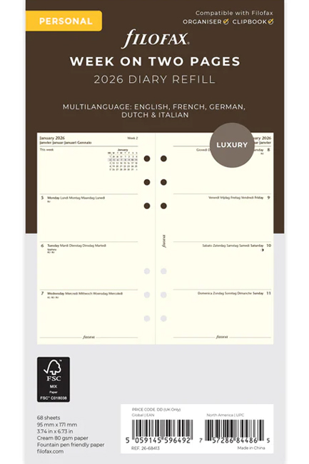 Αρχική / ΧΑΡΤΟΠΩΛΕΙΟ / Ημερολόγια - Ατζέντες - Organizer / Ημερολόγια / Ανταλλακτικά Ημερολόγια Filofax / ΗΜΕΡΟΛΟΓΙΟ FILOFAX 26 PRS ΕΒΔΟΜΑΔΑ ΣΕ 2 ΣΕΛΙΔΕΣ ΑΓΓΛΙΚΟ COTTON CREAM