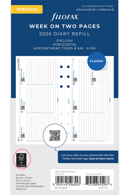 Αρχική / ΧΑΡΤΟΠΩΛΕΙΟ / Ημερολόγια - Ατζέντες - Organizer / Ημερολόγια / Ανταλλακτικά Ημερολόγια Filofax / ΗΜΕΡΟΛΟΓΙΟ FILOFAX 26 PRS ΕΒΔΟΜΑΔΑ ΣΕ 2 ΣΕΛΙΔΕΣ ΑΓΓΛΙΚΟ ΟΡΙΖΟΝΤΙΟ