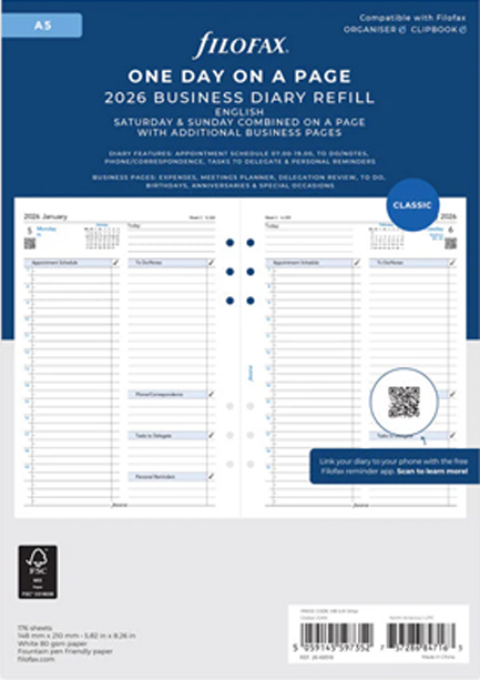 Αρχική / ΧΑΡΤΟΠΩΛΕΙΟ / Ημερολόγια - Ατζέντες - Organizer / Ημερολόγια / Ανταλλακτικά Ημερολόγια Filofax / ΗΜΕΡΟΛΟΓΙΟ FILOFAX 26 A5 ΗΜΕΡΑ ΣΕ 1 ΣΕΛΙΔΑ ΑΓΓΛΙΚΟ BUSINESS