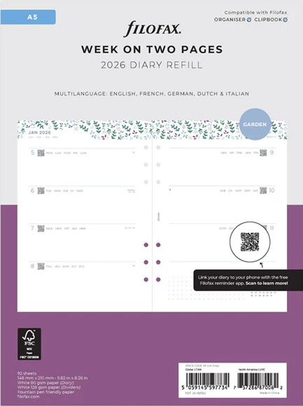 Αρχική / ΧΑΡΤΟΠΩΛΕΙΟ / Ημερολόγια - Ατζέντες - Organizer / Ημερολόγια / Ανταλλακτικά Ημερολόγια Filofax / ΗΜΕΡΟΛΟΓΙΟ FILOFAX 26 A5 ΕΒΔΟΜΑΔΑ ΣΕ 2 ΣΕΛΙΔΕΣ ΣΕ 4 ΓΛΩΣΣΕΣ GARDEN