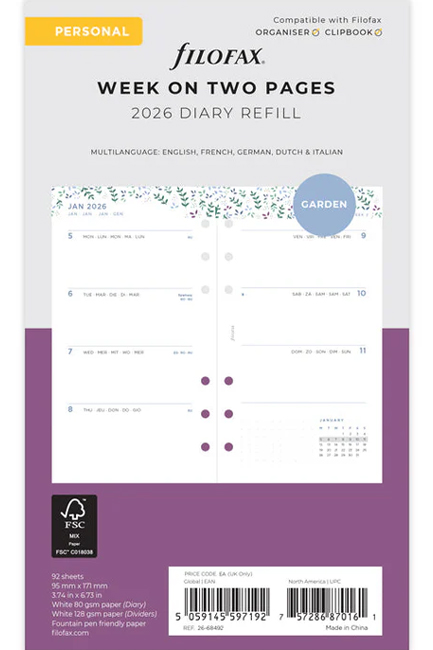 Αρχική / ΧΑΡΤΟΠΩΛΕΙΟ / Ημερολόγια - Ατζέντες - Organizer / Ημερολόγια / Ανταλλακτικά Ημερολόγια Filofax / ΗΜΕΡΟΛΟΓΙΟ FILOFAX 26 PRS ΕΒΔΟΜΑΔΑ ΣΕ 2 ΣΕΛΙΔΕΣ ΑΓΓΛΙΚΟ GARDEN